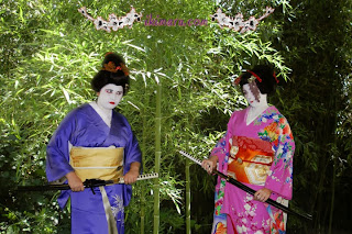 First of all, a few years ago, Samantha and I did a geisha makeover at Metrocon. Here is one of my favorite pictures from it. I am wearing the blue kimono, as the big sister, and Samantha is wearing the pink kimono.